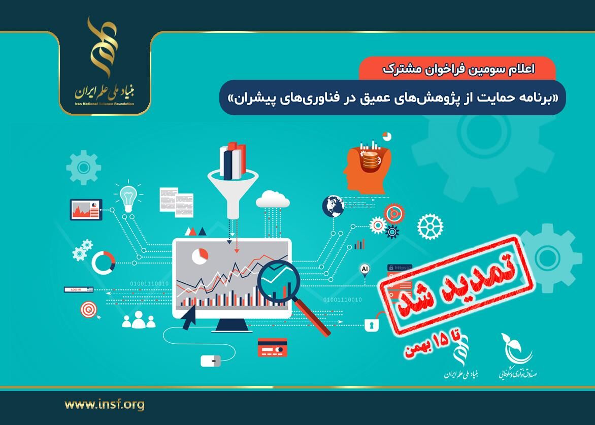 تهران- ایرنا- بنیاد ملی علم ایران، مهلت فراخوان برنامه حمایت از پژوهش‌های عمیق در فناوری‌های پیشرفته را تا ۱۵ بهمن‌ماه تمدید کرد.