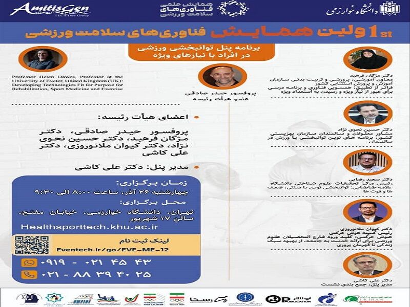 تهران- ایرنا- میزگرد تخصصی توانبخشی با ورزش برای افراد با نیازهای ویژه ۲۶ آذرماه در حاشیه اولین همایش فناوریهای سلامت ورزشی در دانشگاه خوارزمی برگزار میشود.